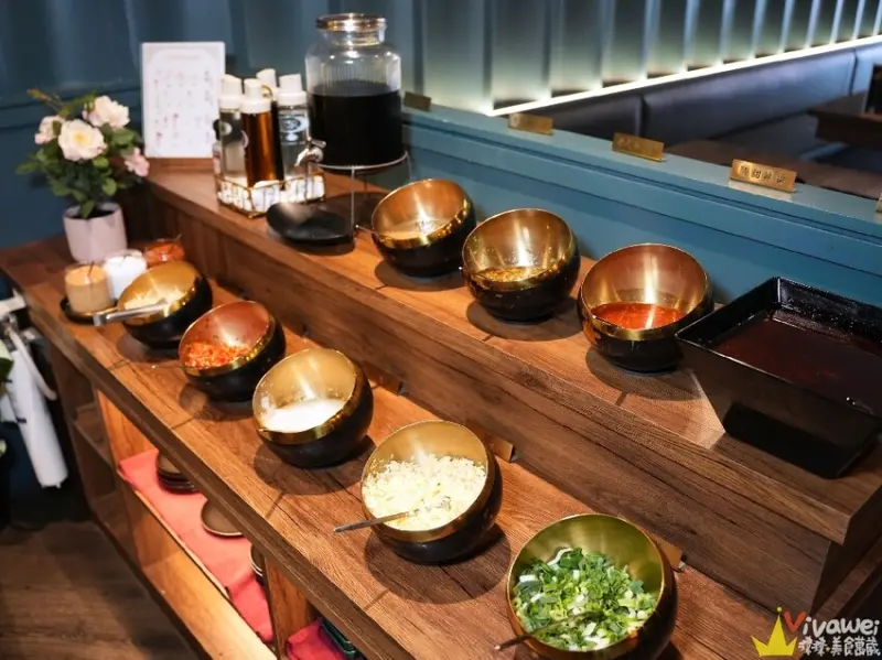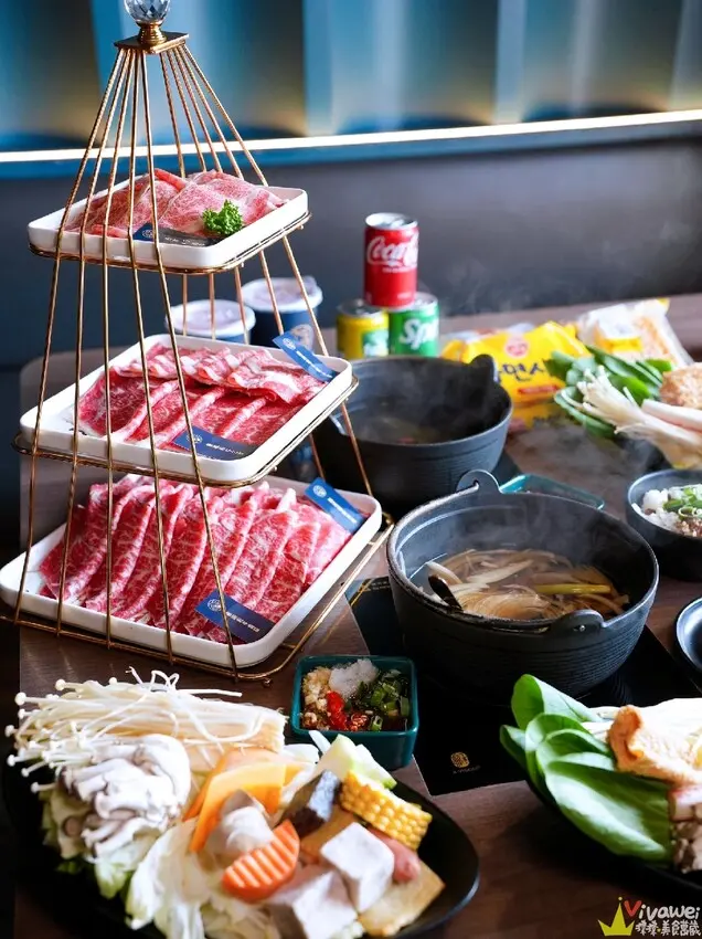 ▲整體來說,這間「金蒔鍋物-桃園大竹總店」,附設特約停車場方便停車,店家備有兒童座椅,二樓還有小包廂隔間,用餐起來特別有隱私,一樓的環境也很寬敞舒適,歐式典雅的裝潢配上浪漫的藍調音樂,讓你來金蒔,度過美好金時!內用自助吧有多款蔬菜及火鍋配料,還有麵食、飲料、冰品都可以自行取用!這天吃的夢幻肉天堂和牛階梯雙人套餐,不只肉量很多,肉質也很好,肉肉控可千萬不要錯過囉😋
