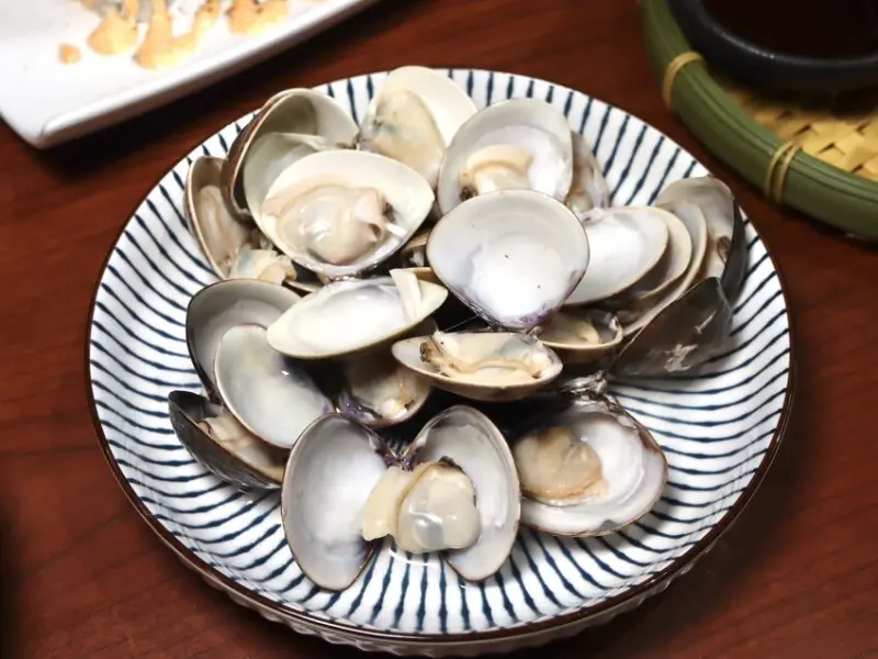 ▼用手指在旁邊當比例尺,就可以知道真的比一般蛤蠣還大!湯汁超級鮮甜帶點酒香,清酒的香氣和微甜口感滲透到大蛤中,肉質鮮嫩又清爽