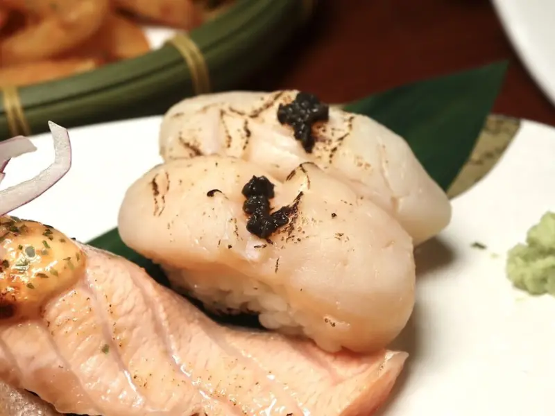 ▼鮮甜的干貝炙燒過後頂端再放上魚子醬點綴提味