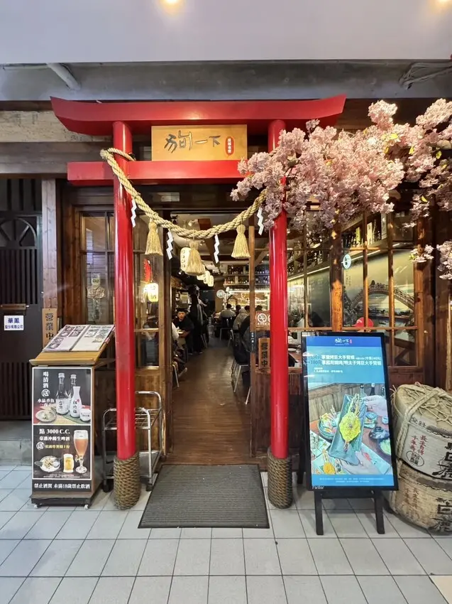 ▼店外裝潢很有濃厚日式氛圍,有櫻花、鳥居、清酒桶,讓你一秒到日本