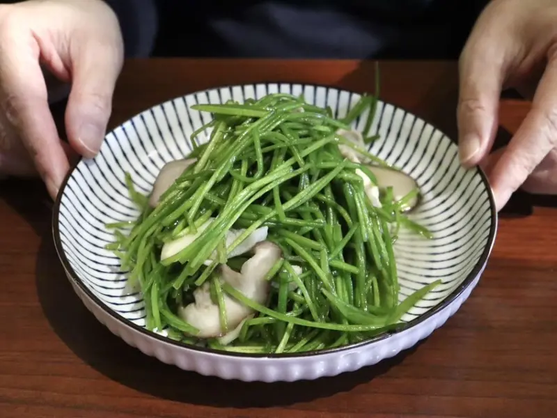 ▼脆口的水蓮炒到油亮油亮,搭配蒜頭和香菇提味,裡頭還吃得到松阪豬肉片。鹹香美味~天啊好想來一碗白飯XD