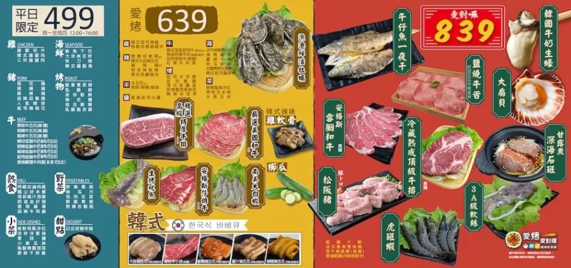 現在台中燒肉吃到飽餐廳相當競爭,但說到老品牌的台中燒肉吃到飽,那台中愛烤愛對囉應該大家都不陌生,目前愛烤愛對囉在全台有4家分店,分別在士林、板橋、宜蘭和台中。近期台中愛烤愛對囉燒烤吃到飽才推出了全新菜單,499平日限定、639及839元價位吃到飽,菜色品項和口味選擇很多樣化,假日用餐人潮比較多,建議先訂位比較保險哦~