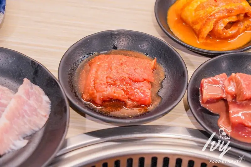 在進門口旁還有一個冰櫃,這裡面五種韓式小菜,還有特調的三種燒肉醬,有水果燒肉、味噌、檸檬魚露。