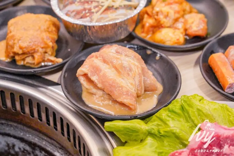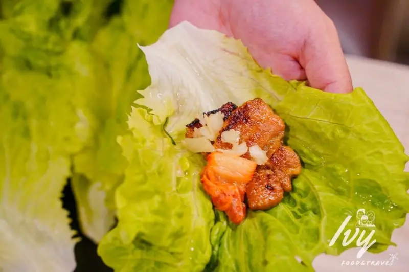 韓式調味的豬五花肉,我們第二愛咖哩豬五花,有著咖哩的香味讓豬五花肉吃起來味道濃郁不死鹹,搭配生菜、泡菜等吃一起下口,清脆爽口超好吃。