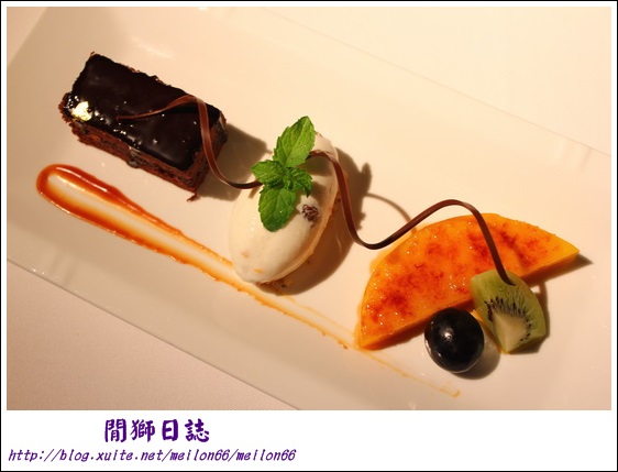 由左至右為巧克力蛋糕、牛奶核桃冰淇淋和焦糖芒果~