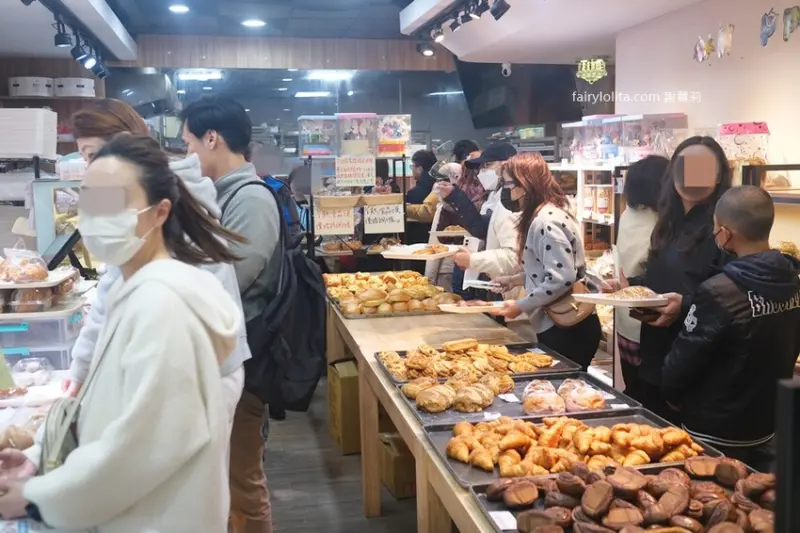 看看這些來搶購麵包的客人,好像看不到盡頭似的,一直往裡面鑽。