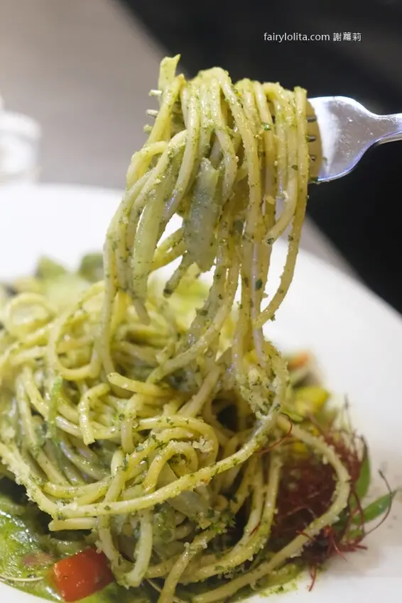 都還沒吃就可以聞到濃郁的青醬味道,真的好引人食慾,其中加了不少起司粉,更是增添它不少獨特的香氣。
