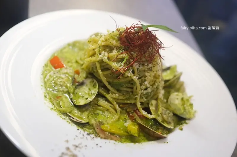 我自己還蠻喜歡他們家青醬的調味,塔香味道濃郁卻不會太膩,整個組合搭配得很剛好,麵條比硬口帶有咀嚼感,整體表現蠻不錯的。