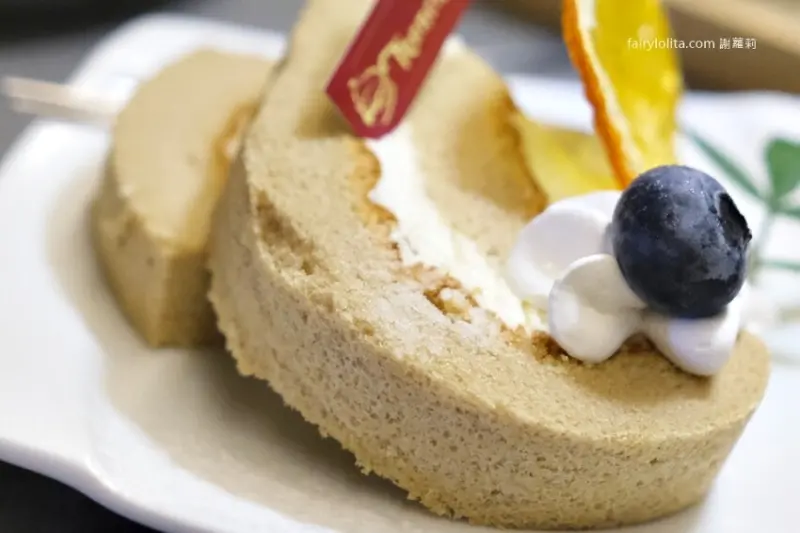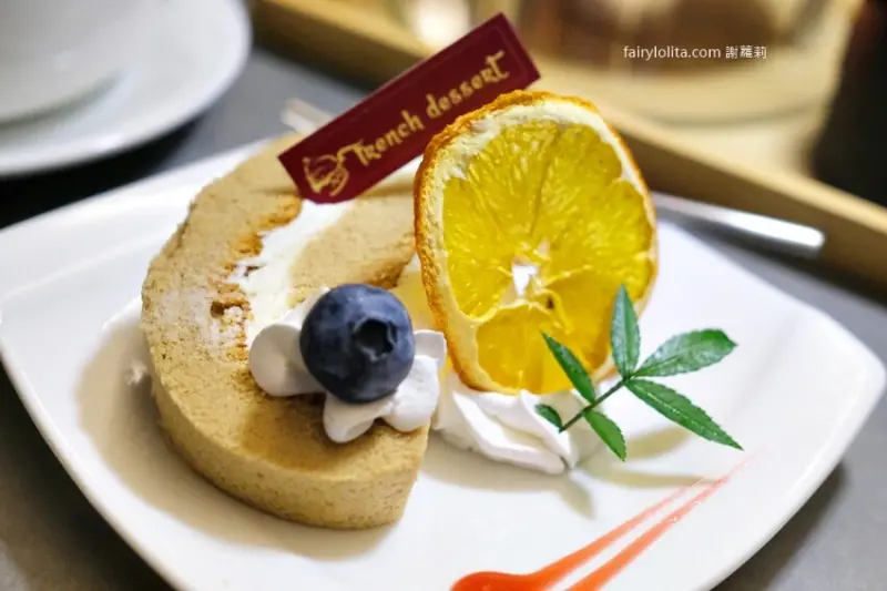 這個甜點讓我印象深刻,別說擺盤精緻漂亮,連黑糖生乳捲都超好吃,搭片的柑橘片很是畫龍點睛,尤其蛋糕體相當濕潤且充滿了濃濃的黑糖香氣,不會太甜膩,這個真的來幾片我通通都可以!XD