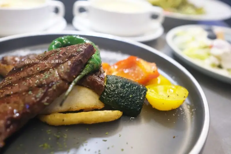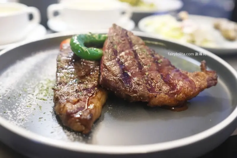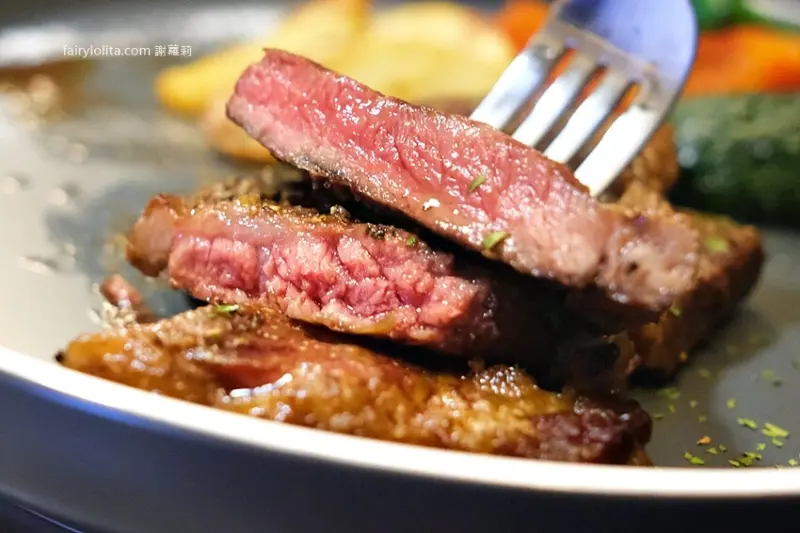 煎得五分熟的牛排熟度超剛好,肉質富含咬勁、還有極其飽滿的肉汁,真的可以大口吃肉超過癮。