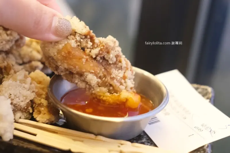附上的佐醬是酸酸辣辣的甜辣醬,沒想到這個組合竟然會這麼對味又好吃,三角骨有肉整個吃得很實在,皮是傳統麵衣,真的超有酥脆感,才一上桌就整個被清光光!XD