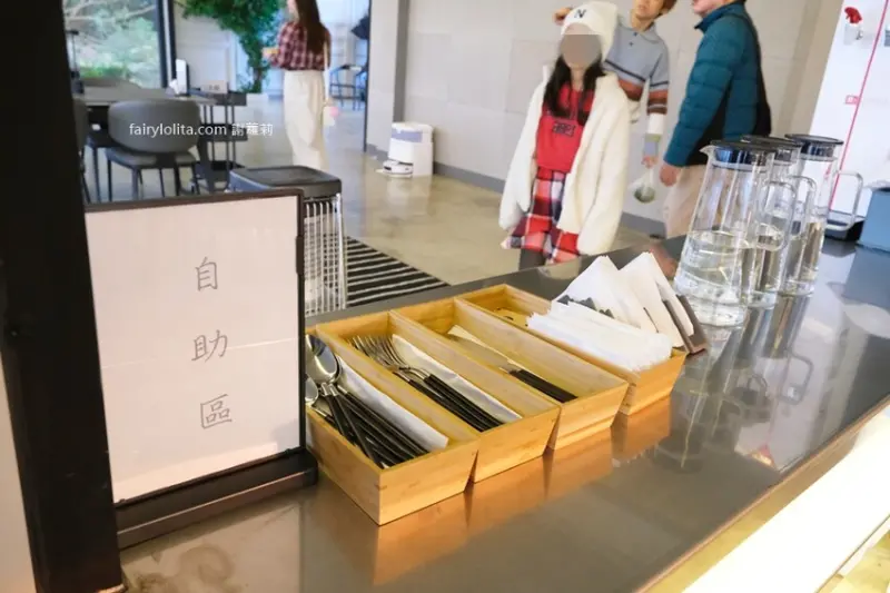 自助區提供開水、餐具、衛生紙,有需要的客人都可以自行取用。