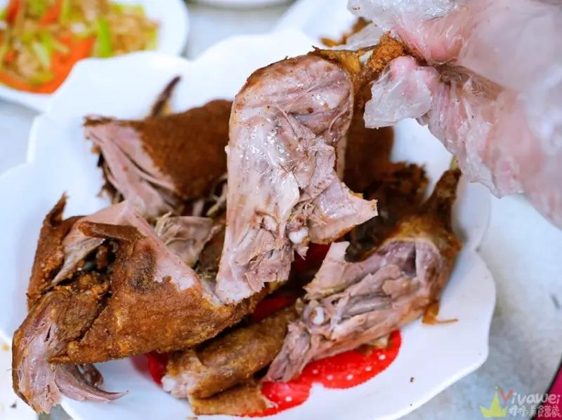 ▲香酥鴨的外皮口感酥脆,用手扒雞的手套扒開還可以聽到卡滋卡滋的聲音,這道香酥鴨一定要趁熱馬上吃,才會吃得到肉質多汁的JUICY口感喔!