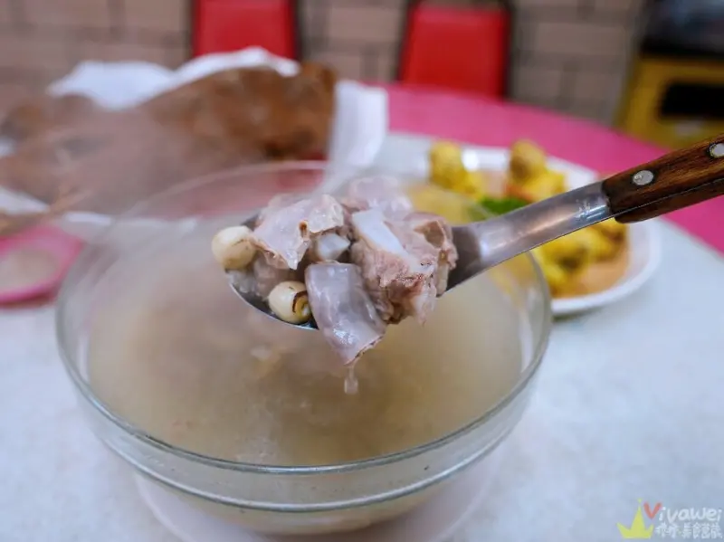 ▲這道是菜單上沒有的隱藏版湯品!一端上桌就能看到正在冒煙的滿滿熱氣!裡面有蓮子+粉腸+排骨~冬天來一碗超級暖身啦🤗