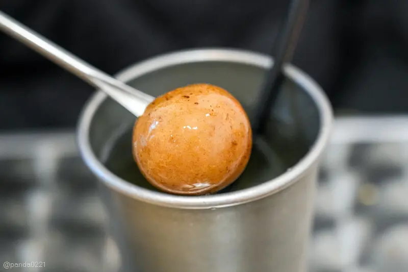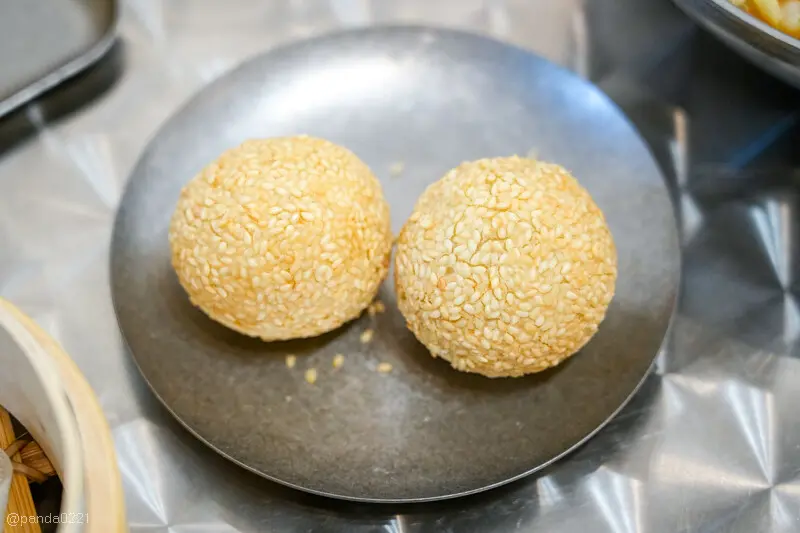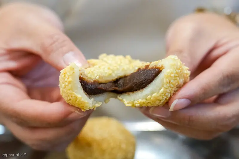 芝麻球外皮香脆,帶著濃郁芝麻香,咬下去Q彈,裡頭是甜而不膩的豆沙餡,口感綿密,香氣滿滿!
