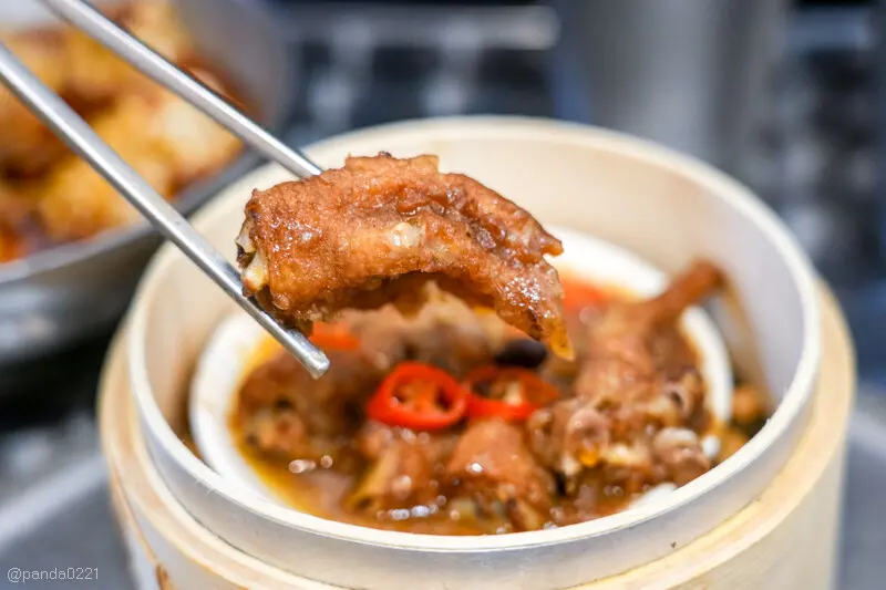 豉汁蒸鳳爪一吮就脫骨,豉汁深入每塊雞爪,口感厚實滑溜,頓時齒頰留香。