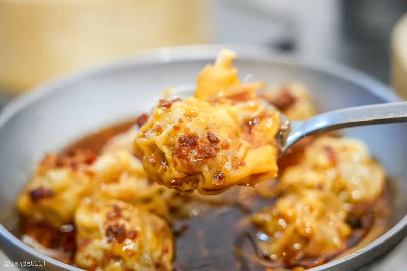 椒麻餛飩抄手皮薄嫩滑,餡料香嫩多汁,搭配又麻又香的椒麻醬,辣味十足,吃了真的是讓人一口接一口!