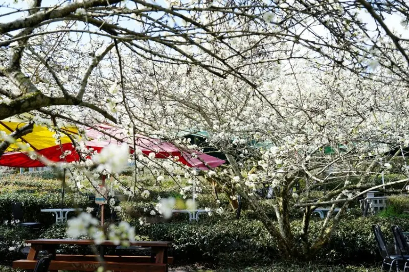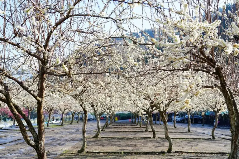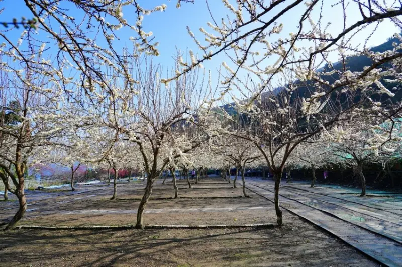 一路往下走,你會看到一排排的櫻花樹。雖然目前還沒完全盛開,但步道兩側的櫻花已經快要綻放了,再過幾天一定更美!今年的 李花 真的是超級震撼,整片花海就像炸開了一樣,遠遠看過去,白茫茫的一片,真的很驚艷!再過一陣子,櫻花也會陸續開放,花季會持續到 3月初,所以趁著休假時來走一趟絕對不錯!當然,還是建議你 平日來,這樣比較輕鬆又能避開人潮,玩得更開心!
