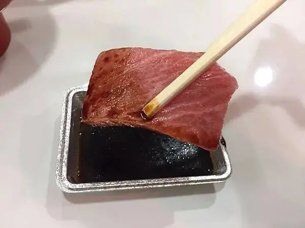 想要單純吃到生魚片也行,店裡招牌魚種-鮪魚肚,在盒裝的貼紙上,對應鮪魚肚的品質分為三種等級,一次可以吃到多種魚類口感,算是必拿的生魚片餐盒。