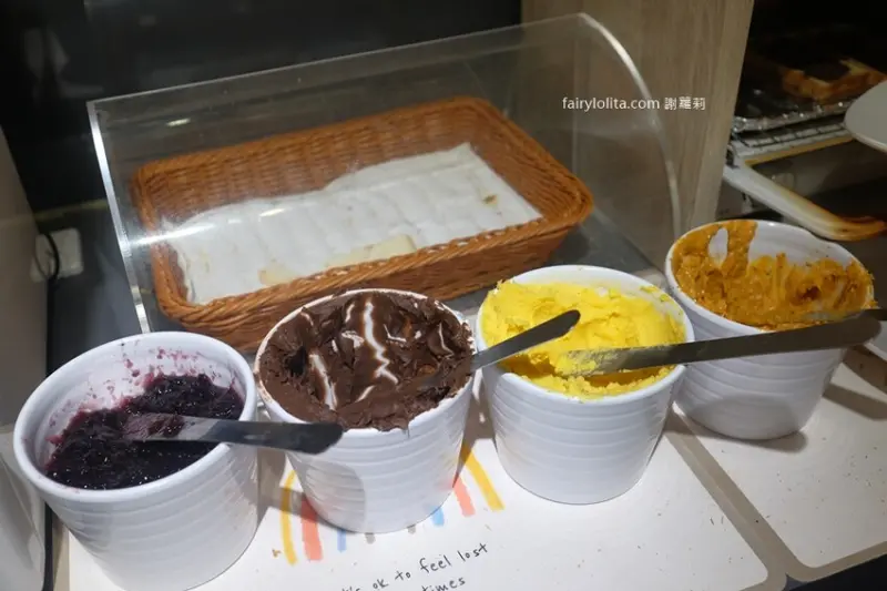 抹醬有藍梅、巧克力、奶油及花生,這個表現也很不錯。