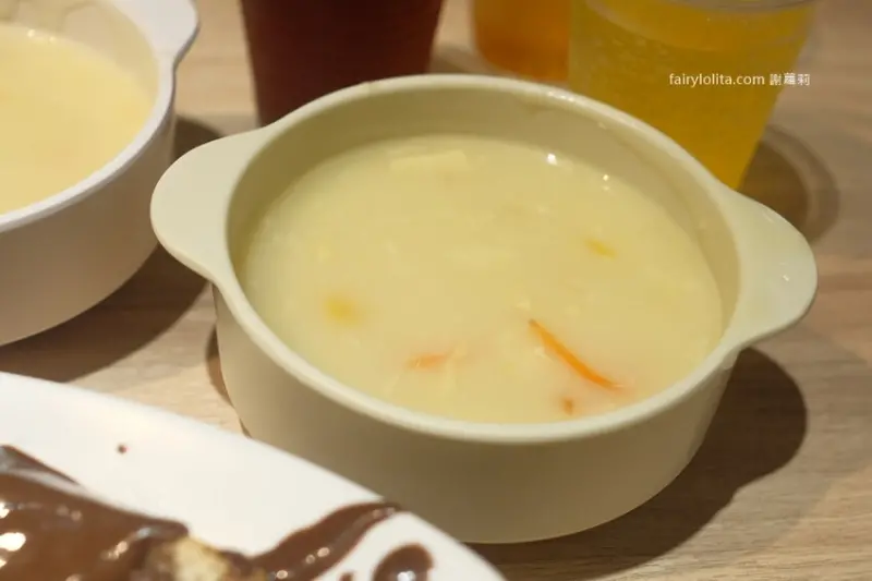 玉米濃湯雖然也是免費續,但用料也是不馬虎,絕對可以讓你吃飽飽再回家。