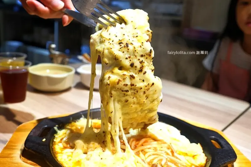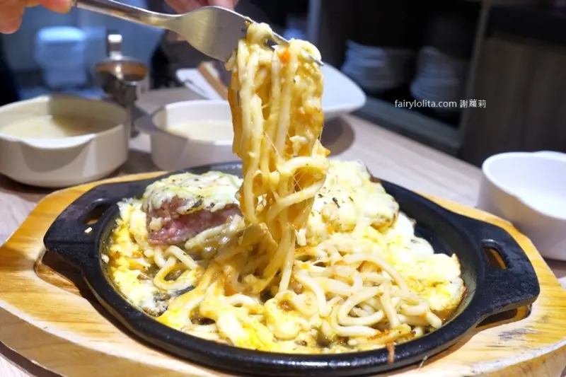 滿滿的起司真的是會讓人大尖叫,還有附餐可以免費吃,這裡最便宜的鐵板麵只要110元,就可以一餐直接讓你飽到隔天中午囉!