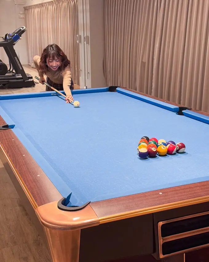 這次入住林口的悅徠舘 Joyfultel 飯店的三人房,非常適合好友或家人共享住宿時光。大廳還有小點心與飲料吃到飽,讓你隨時都在吃吃喝喝。更棒的是,還能與朋友一起在飯店玩撞球,超好玩!