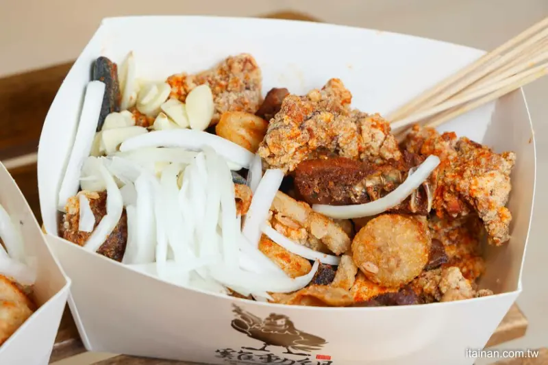 第三個好吃的秘訣就是炸好的鹽酥雞後他們會加入大量新鮮的蒜片跟洋蔥絲當配搭,而且他們是沒有加入傳統九層塔一起炸的鹽酥雞,吃食材的原味,用洋蔥絲與蒜片來添加風味,更為清爽解膩。