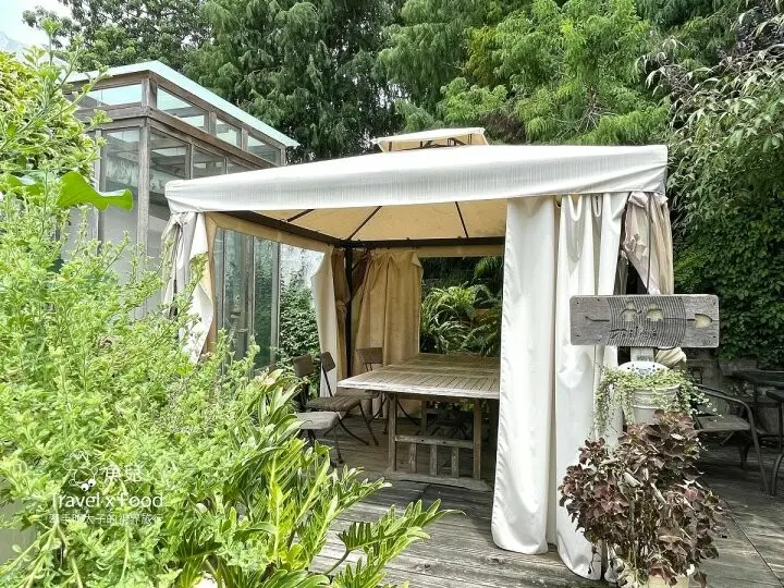 綠海咖啡館的戶外空間相當吸引人,被綠樹花草包圍著,彷彿走進一座小小的森林,也有置身希臘的錯覺,很美,很浪漫。