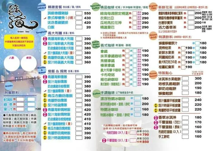 各自選了喜歡的綠茶及果汁,口味上雖然沒有特別的驚艷,但一份套餐附贈湯及飲品,也挺划算的。不過離開後才想起傳說中的月亮咖啡,沒能親眼瞧見月牙型的綠海月亮倒映在咖啡上的景象,有些可惜。