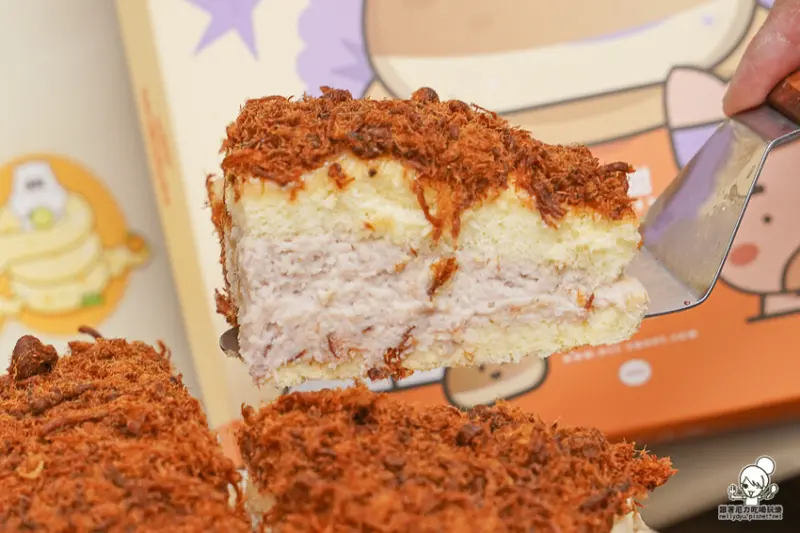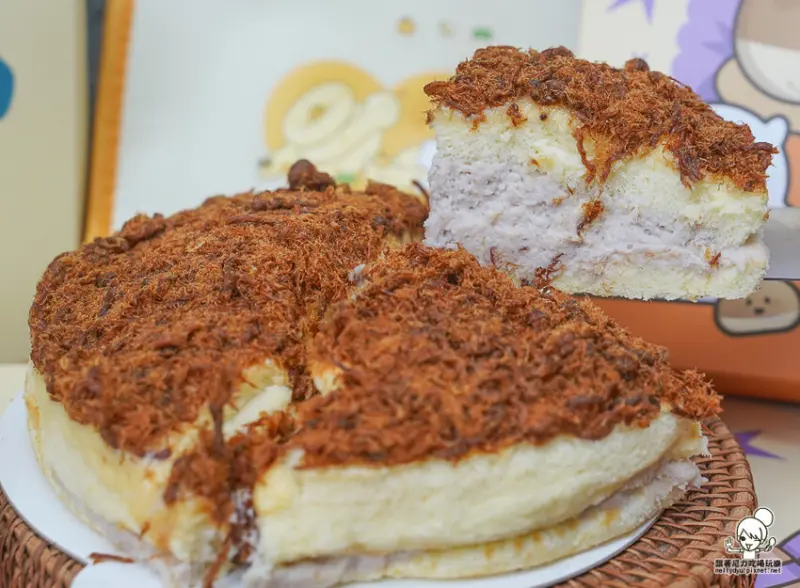 讓蛋糕很豐富多層次,整個打開來灑滿蛋糕表面的肉鬆