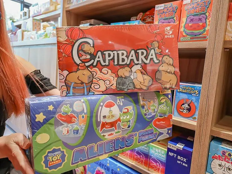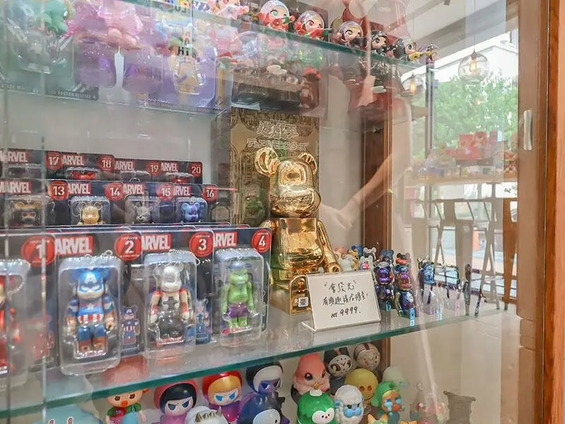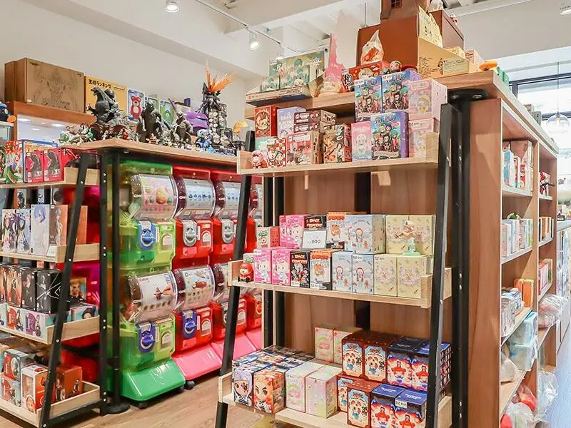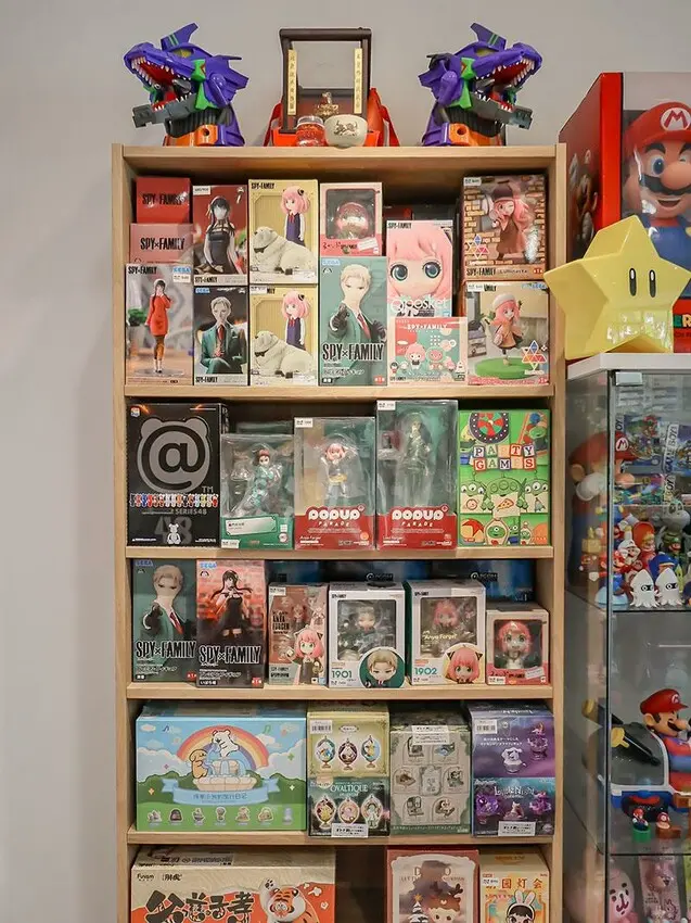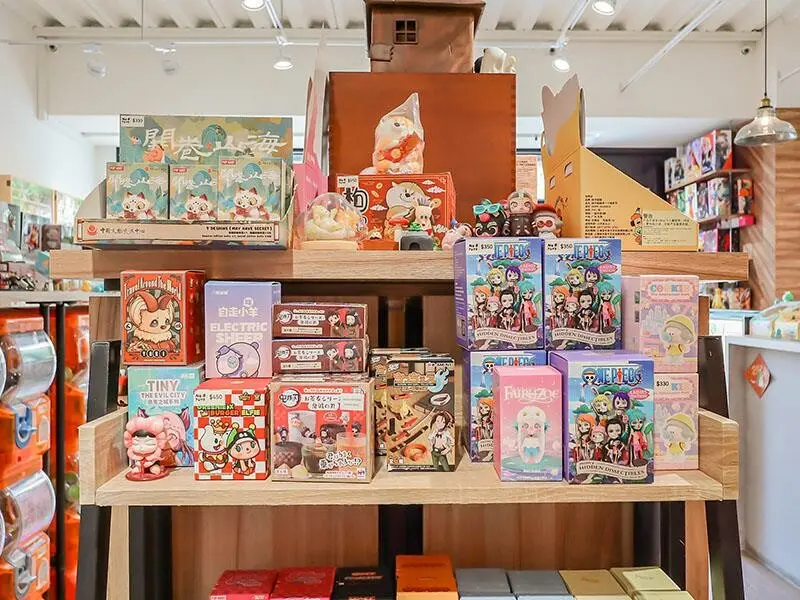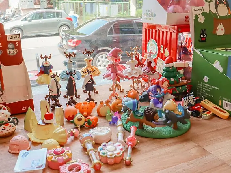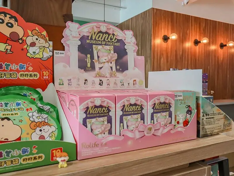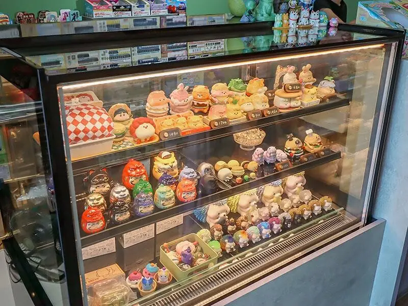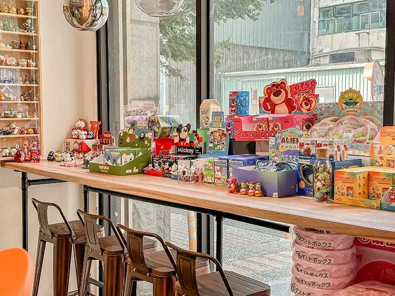 店內空間可說是被塞得滿滿滿,身為一個前玩具人看到嘴角還是上揚了起來!每一吋空間都被細心規劃,展示著琳瑯滿目的玩具與收藏。難得的是,這裡還有座位區,讓你能夠坐下細細品味每一件玩具的獨特之處。我還問了老闆娘,怎麼會有甜點櫃!?因為之前店內是結合甜點和玩具,而現在就把甜點櫃擺上有趣的食物類盒玩,感覺還真是一點都不違和阿!