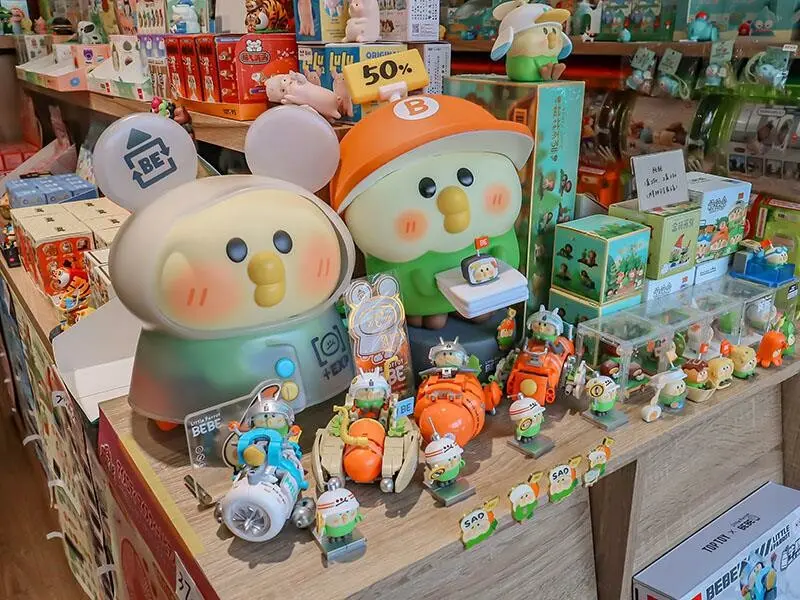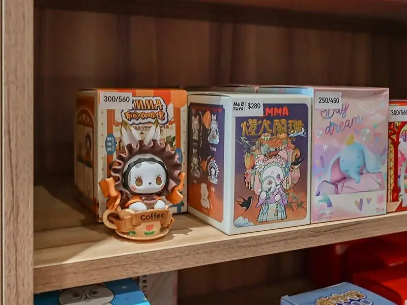 擺放著造型可愛的潮玩IP,像是在邀請你來欣賞它們的小世界。