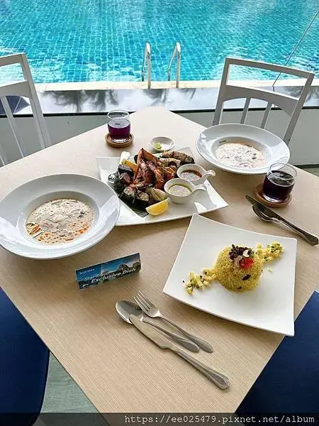 伴著泳池的美景,怎麼吃都幸福感十足吶!