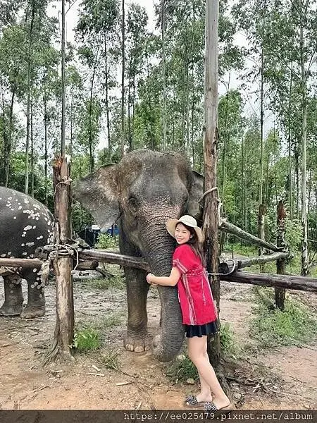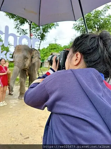 開心的大象互動餵食時間,可以自在的和大象合照~