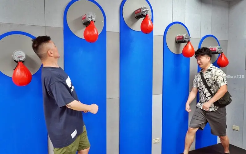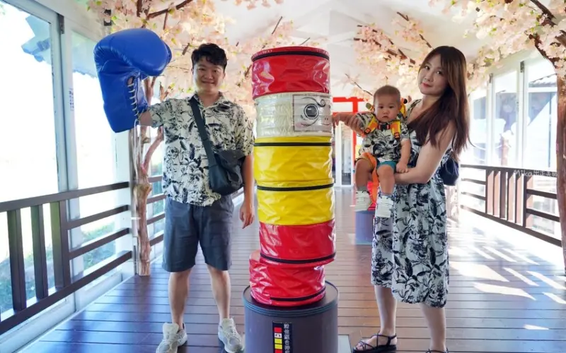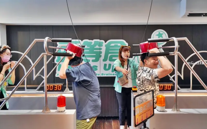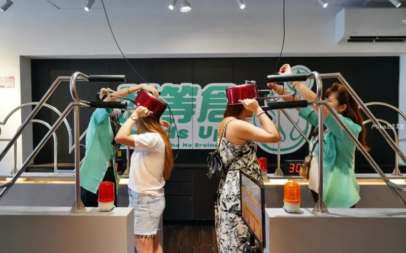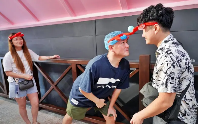 這家是以頭為主角的遊樂天地,總共15項活動設施,門票才200元還可以抵購物金100元。裡面幾乎都是用頭進行各式各樣的趣味遊戲,雙向競爭的設計,讓這些男人好勝心都起來了,勢必要拼個勝負,把寶寶都給看傻了,哈哈。
