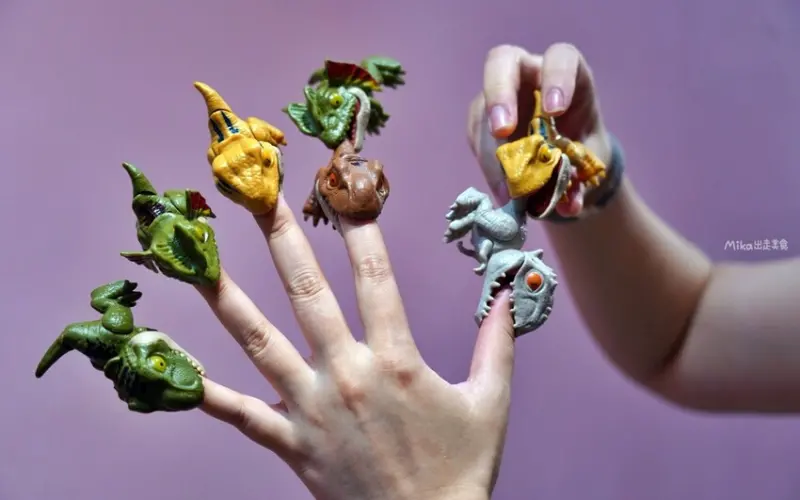 計時30秒,看誰能將恐龍夾在手指上夾最多。