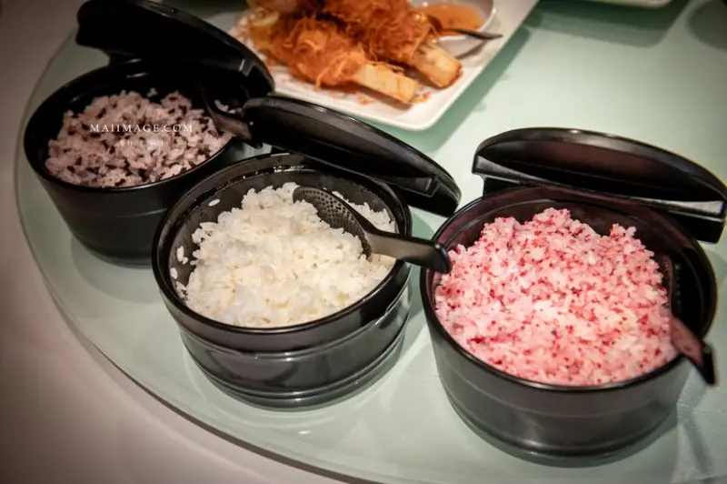 在時時香幾乎每道菜都是白飯殺手,有了這些菜沒吃多個幾碗飯是不可能下桌的。時時香這六人套餐直接提供三種米飯無限供應吃到飽。以不浪費為原則吃完可以請服務人員再幫你續飯,對我這飯桶來說真的是很不錯的服務。