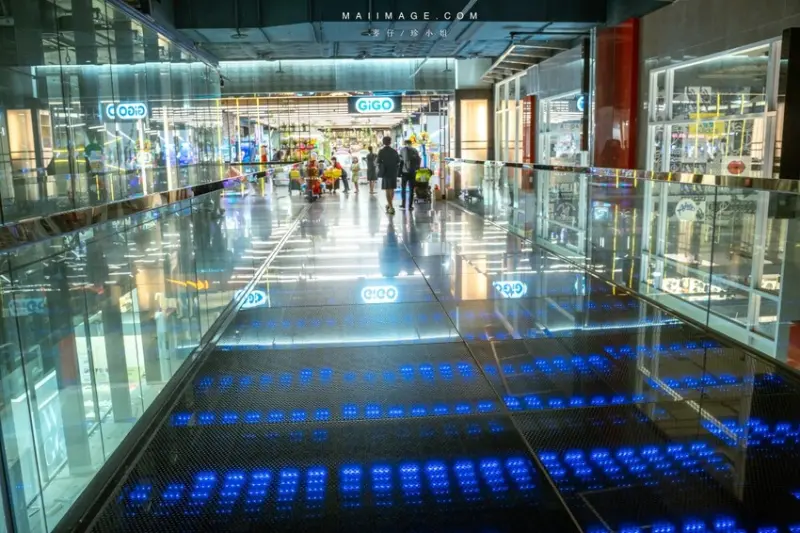 位在4樓的遊樂中心GiGo是小朋友的玩樂天堂。銜接娛樂遊戲區通道打造未來感之玻璃空橋。