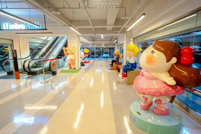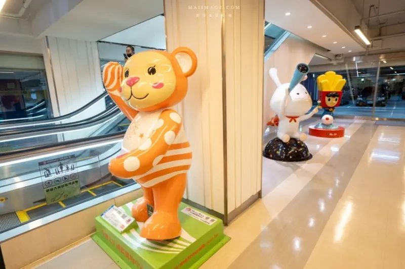 這裡是停車場前往購物中心的入口處,這裡展示的大型公仔是歷年大江購物中心在各樓層所展示過的公仔,現在統一在這裡做展示,好多都是以前來大江時拍過的,好有親切感。也很適合小朋友來這拍照相當可愛。