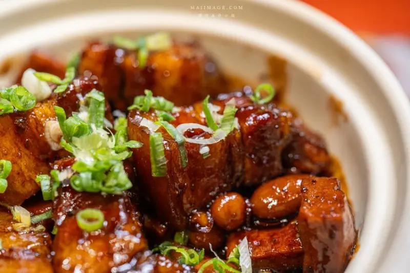 這道料理看起來黑嘛嘛的帶一點微辣,下飯指數直接衝上5顆星以上,這紅燒肉真的太香太下飯了。裡面除了紅燒肉外還有滷蛋、豆乾、花生同樣都是滷得很入味。