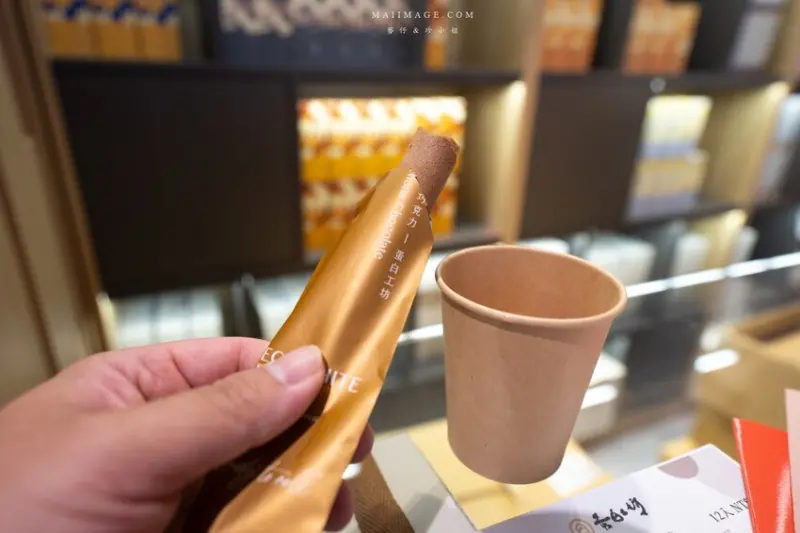 蛋白工坊來自南投,主打以新鮮高品質蛋白跟天然奶油為原料,以低溫烘烤製作蛋白捲的點心品牌我跟珍小姐都很喜歡,他們家的服務相當好,除了大方提供蛋捲試吃還有供應熱茶。