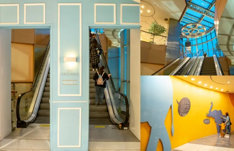 往四樓的手扶梯往上走這裡有小朋友的互動區,可以拿著粉筆在這裏塗鴉作畫,相當好玩。
