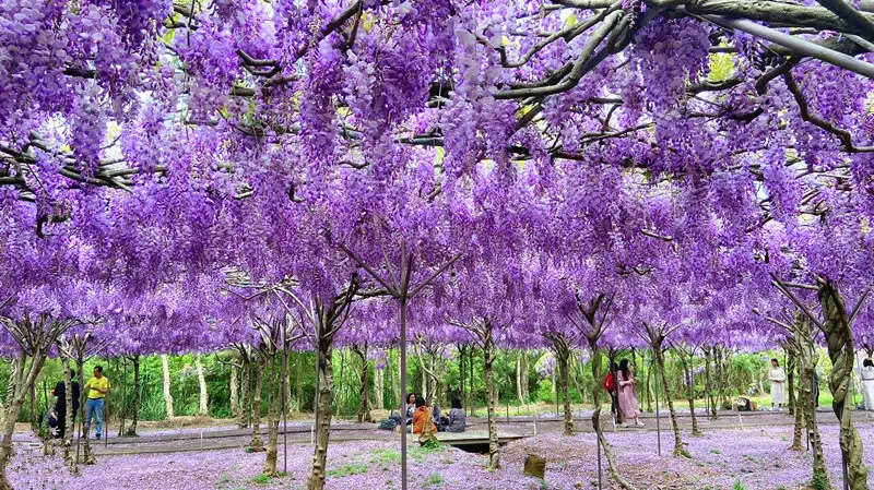 淡水紫藤花園的花旗雖然只有二週,但每年依然吸引大批遊客前來打卡拍美照,今年開放日期雖然已經公布,但還是要看實際花況為主,這是去年去淡水紫藤花園二號水源園區的照片,是不是美到一個新高度?如果今年也想捕捉到紫色浪漫,記得隨時關注他們的官方粉絲頁喔!
