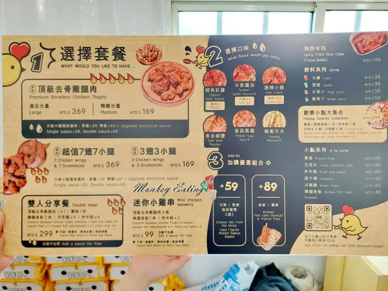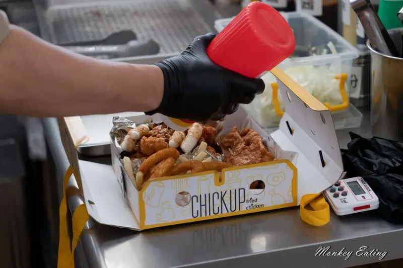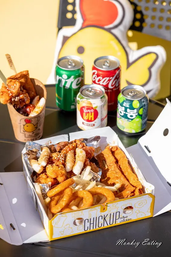 小雞上樓 CHICK UP嚴選頂級去骨雞腿肉,現點現炸,還有6種獨家醬汁可以選擇。還有小翅小腿跟一些炸物小點,另外也有韓式飲料可以搭配。第一次不知道點什麼推薦可以點分享餐,份量多又划算。