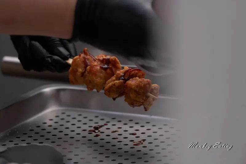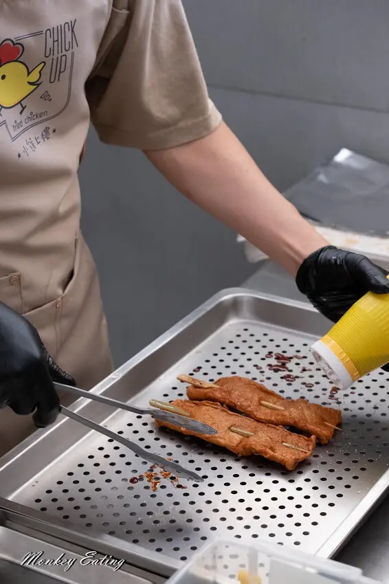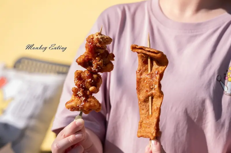 嘴有點纏又不想吃太多,迷你小雞串是不錯的選擇,小巧手拿杯盒,吃的到炸雞串、魚板、年糕,外脆內嫩,鹹香有嚼勁,當作逛市集的散步美食很可以。