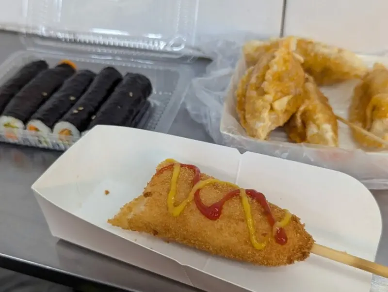 ✦這間街邊小攤提供 VEGAN 餃子、熱狗、飯捲,但應該都是微波料理包,價格也不便宜😂不過在明洞逛街嘴饞的話,有這些小食可以墊墊胃很方便啦