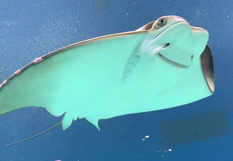 我超喜歡魟鱼,因為牠的臉好像時刻掛著微笑,游水的樣子又像在飛翔,從容不迫的樣子。