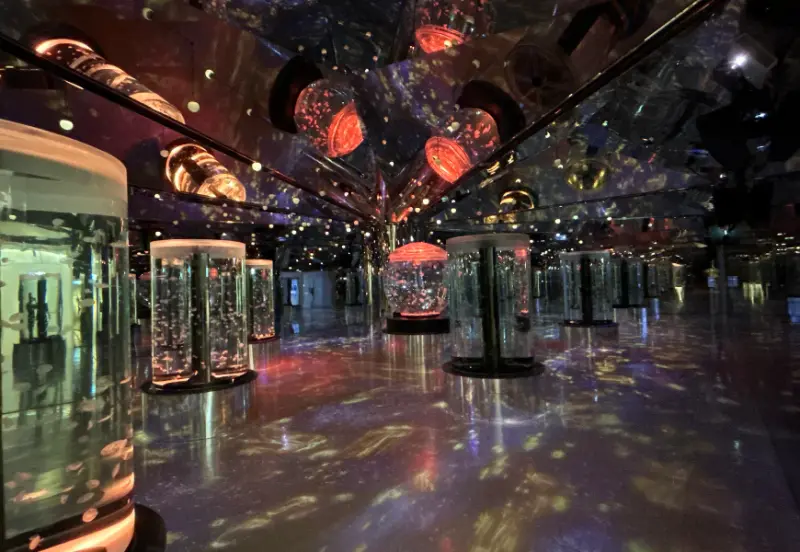 「水母萬花筒」以四季為主題,結合燈光、音樂與影像,沉浸式體驗,彷彿變身水母一般,體驗五彩的海洋世界。現場體驗真的很震撼!強烈推薦必拍!