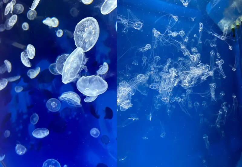 此區也展示了不同品種的水母,看著水母的律動彷彿心跳一般地舞動,感受到海洋生物的生命力,搭配音樂很讓人感動!